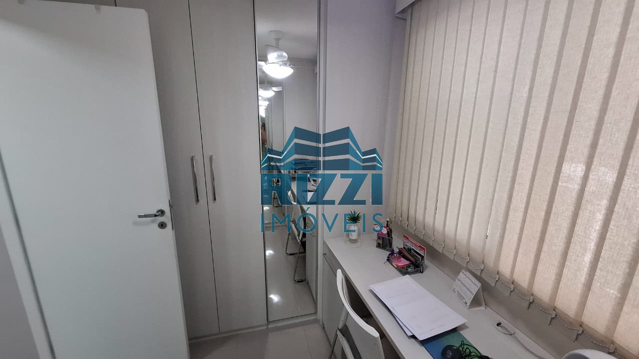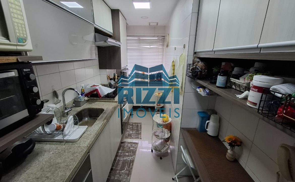A cozinha conta com armários planejados, assim como os quartos, proporcionando organização e aproveitamento inteligente dos espaços. A varanda possui cortina de vidro, garantindo mais conforto e integração com a área interna.