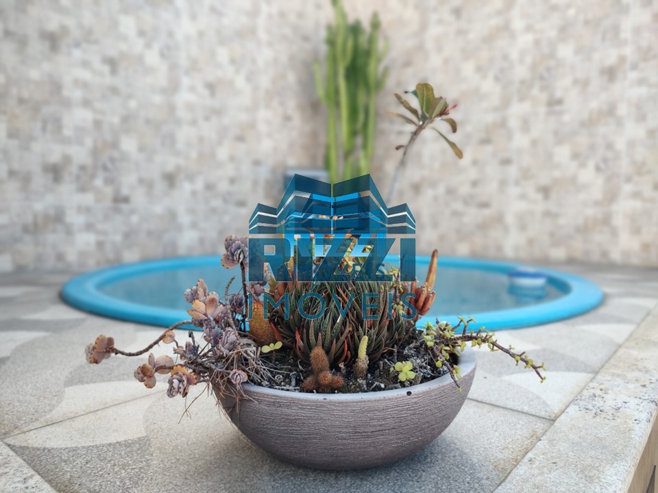 Escada de acesso 2º pavimento: Salão de TV, Banheiro Social e Área de Convivência: Piscina, Área Coberta: Churrasqueira e Bancada. Lazer completo.